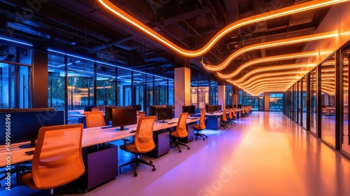 office, interior, design, workspace, lighting, modern, technology, corporate, empty, furniture, architecture, contemporary, blue, orange, environment, clean, professional, ambience, minimalism, layout, creativity, productivity, open, space, aesthetic, urban, stylish, innovative, flexible, collaboration, comfort, efficiency, visual, structure, decor, organisation, tech, atmosphere, business, work, future, digital, sleek, calmness