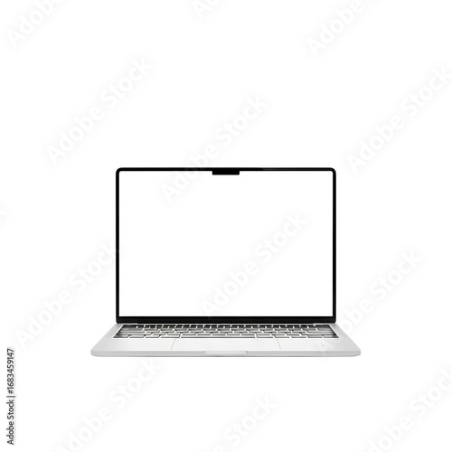 Modern open laptop computer displaying a blank screen with a keyboard ready for use in a professional setting isolated on transparent background