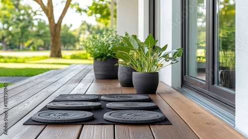 Modern Outdoor Space with Planters and Mats