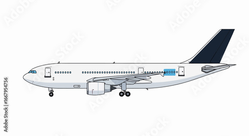 aeroplane, aircraft, jet, airliner, plane, flight, travel, transport, aviation, commercial, passenger, air, sky, fly, journey, vehicle, transportation, isolated, white, background, illustration, vector, graphic, drawing, side, view, profile, modern, technology, engine, wing, tail, fuselage, window, door, landing gear, aerodrome, terminal, take-off, landing, air travel, global, international, domestic, vacation, business, cargo, freight, speed