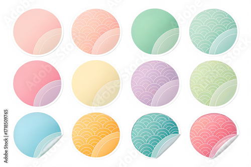 Modern Pastel Circle Stickers PNG – Minimal Round Label Set with Soft Shadows on Transparent Background