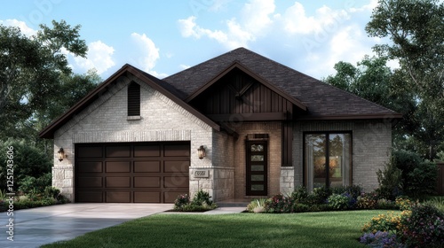 house, ranch, modern, suburban, home, real estate, property, architecture, exterior, design, building, residential, new home, construction, luxury home, roof, garage, landscaping, yard, lawn, tree, sky, cloud, sunlight, window, door, stone, brick, wood, facades, homeowner, for sale, housing, market, development, community, living, style, affordable