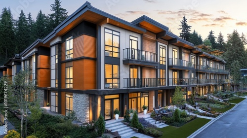 architecture, building, design, modern, residential, balcony, landscaping, sunset, tree, window, urban, exterior, nature, home, community, structure, contemporary, environment, peaceful, aesthetic, greenery, facades, light, space, property, neighbourhood, material, style, harmony, comfort, luxury, symmetry, accessibility, relaxation, warmth, inviting, lifestyle, layout, calmness, beauty, attracted, craftsmanship, detail, setting, elevation, atmosphere