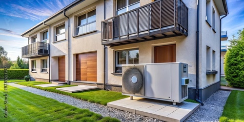 Modern residential building with state-of-the-art heat pump for heating, home, house, architecture
