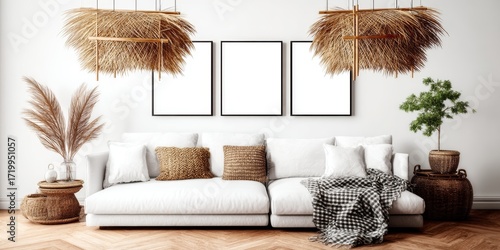 modern, room, white, sofa, minimalist, decor, interior, design, furniture, natural, light, textile, cushion, plant, artwork, wall, hanging, straw, lamp, cosy, aesthetic, home, comfort, elegance, pendant, basket, greenery, wood, texture, flooring, architecture, contemporary, space, clean, bright, inviting, stylish, layout, arrangement, atmosphere, soft, ambience, serene, chic, woven, detail, setting, relaxation