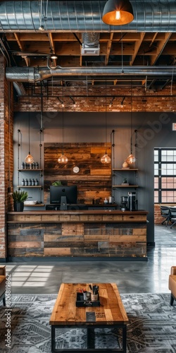 wood, metal, industrial, beam, brick, concrete, glasses, leather, carpet, plant, computer, desk, shelf, storage, workspace, workplace, collaboration, creativity, innovation, productivity, business, company, corporation, team, work, job, career, success