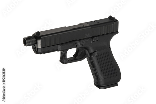 Modern semi-automatic pistol isolate on a white background. Armament for the army and police. Short-barreled weapon