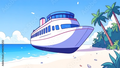 Modern ship in the beach
