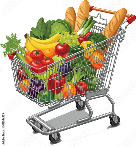 shopping, cart, food, isolated, basket, fruit, supermarket, streetcar, vegetable, grocery, fresh, vegetable, market, healthy, white, tomatoes, red, buy, full, green, retail, metal, diet, store, shop