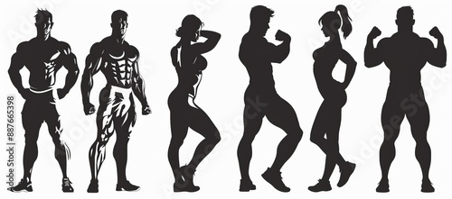 Modern silhouettes of bodybuilders and gym lovers on an isolated white background.