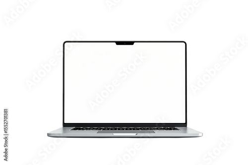 laptop, computer, technology, screen, display, modern, silver, notebook, portable, device, electronic, contraption, keyboard, white, blank, empty, open, isolated, transparent, background, cut-out, studio, shot, front, view, minimalist, clean, business, work, office, digital, communication, cyberspace, web, datum, information, broadband, wireless, connection, personal, tech, hardware