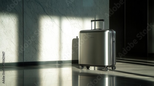 suitcase, travel, baggage, silver, shadow, minimalist, aerodrome, wheel, interior, carry-on