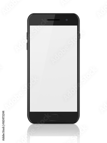 Modern smartphone with blank screen. Generic mobile smart phone on white background,