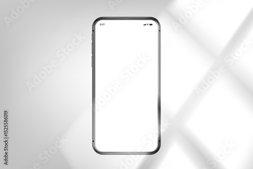 Modern smartphone with blank screen on bright background with window light. 3d vector mockup
