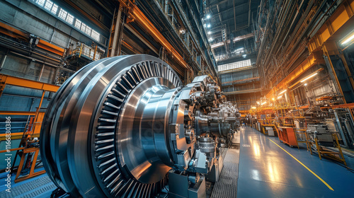 steam, turbine, electricity, generation, power, plant, industrial, facility, manufacturing, engine, machinery, engineering, technology, metalwork, large, scale, factory, production, line, intricate, design, architecture, energy, infrastructure, wonders, realism, photorealistic, wide, angle, sleek, shiny, surface, craftsmanship, mechanical, background, lighting, equipment, part, heavy, industry