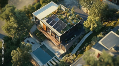 house, garden, solar, energy, architecture, green, design, residential, modern, rooftop, nature, landscaping, environment, eco, sustainability, pool, sunlight, contemporary, view, calm, space, tree, leisure, relaxation, urban, area, balcony, fresh, roof, innovative, technology, home, beautiful, creative, style, foliage, setup, ground, lifestyle, artistic, aesthetic, setting, residential area, warmth, harmony, layout, perspective