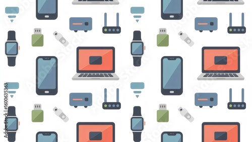 Modern tech devices pattern for digital lifestyle brand or tech company promotional materials and presentations