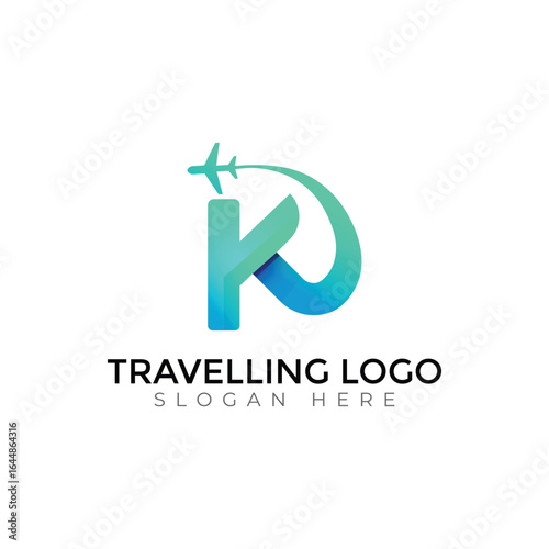 Modern Travel Agency Letter Logo with Airplane and Sunset Design