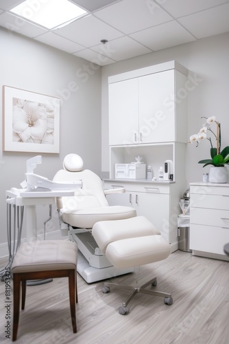 modern, treatment, room, botox, injection, patient, practitioner, sterile, bright, professional, clean, comfortable, exam, chair, medicals, equipment, contemporary, cabinetry, relaxing, workspace, health care, clinical, interior, design, procedure, therapy, cosmetic, aesthetic, flower, decoration, orchid, calm, serene, focused, preparation, medical center, hygiene, wellness, prescription, service, doctor, nurse, light, setup
