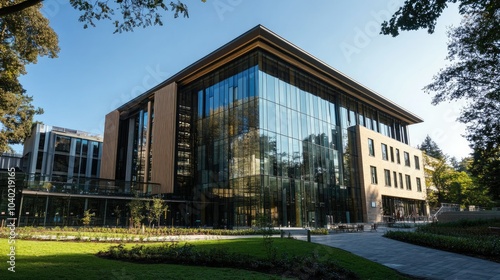 Modern university building with glass walls