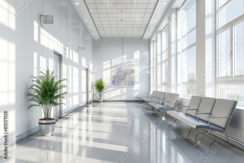 Modern Waiting Room. Empty Office Area with White Interior and Poster Side