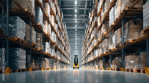 warehouse, logistic, storage, inventory, shelf, forklift, industrial, building, business, distribution, center, supply, chain, management, row, modern, interior, efficient, box, cargo, shipping, factory, industry, product, good, transport, depot, commerce, trade, retail, wholesale, cardboard box, pallet, order, fulfillment, operation, economy, production, manufacturing, large