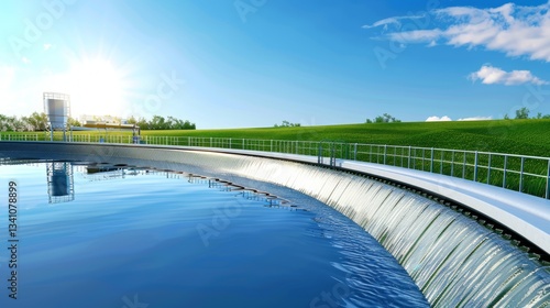 Modern wastewater treatment system featuring sustainable water reuse techniques. Ultra-clear image with sharp industrial textures.