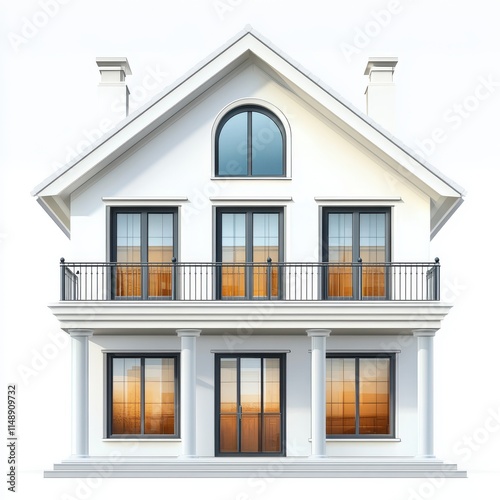 Modern white family house with large windows and elegant balcony design.