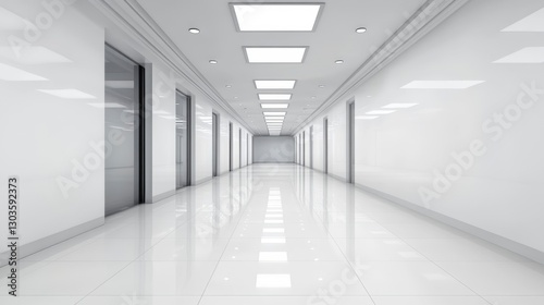 hallway, office, interior, white, modern, architecture, design, minimalist, corridor, building, bright, clean, empty, nobody, glasses, door, lighting, tile, floor, perspective, geometric, line, symmetry, pristine, contemporary, professional, workplace, corporate, space, style, sterile, glossy, light, neutral, monotone