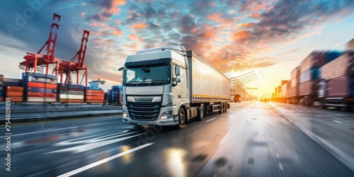 truck, transportation, logistic, highway, speed, sunset, cargo, delivery, shipping, industry, motion, blur, freight, travel, vehicle, commercial, transport, business, road, trade, supply, chain, dusk, moving, haulage, distribution, traffic, export, import, good, landscape, connectivity, driving, skyline, commerce, fast, journey
