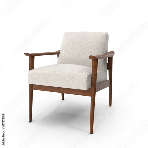 Modern Wooden Armchair with White Cushion Isolated on Transparent Background
