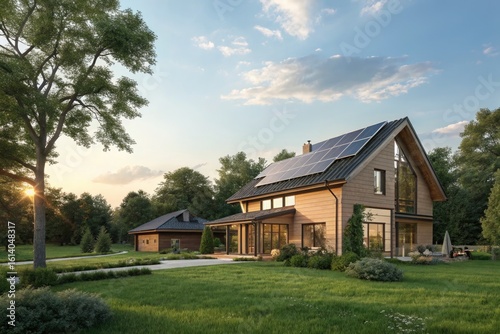 modern, house, wooden, solar, panel, sunset, garden, greenery, contemporary, architecture, serene, landscape, residential, area, nature, design, sustainable, living, space, rural, setting, evening, light, landscaping, energy, efficiency, home, exterior, tranquil, environment, roomy, yard, family, natural, surrounding, sunlight, peaceful, habitat, structure