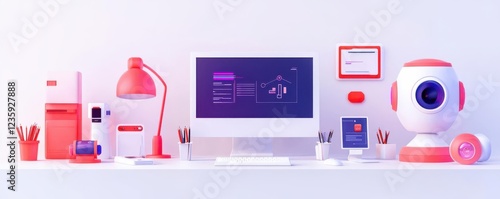 workspace, tech, contraption, modern, colourful, decor, computer, monitor, laptop, desk, setup, trend, comfort, balance, project, aesthetic, urban, storage, office, flexibility, design, layout, nomad, user, furniture, home, chic, item, equipment