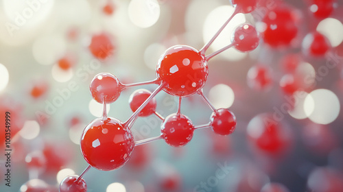 Molecular Structure with Red Spheres and Blurred Background. A close-up view of a vibrant molecular structure featuring red spheres set against a softly blurred background.