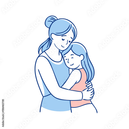 mom and daughter hugging vector icon, mother’s day vector illustration - simple illustration of mom and daughter hugging perfect for logos, and mother’s day -themed designs.
