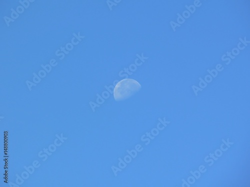moon, heaven, blue, all, day, night, planet, light, lunar, cloud, full, nature, astronomy, white, moonlight, evening, bright, half moon, clear, rail, satellite, star, blue skies