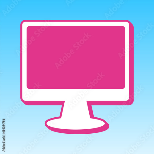Monitor with brush sign. Cerise pink with white Icon at picton blue background. Illustration.