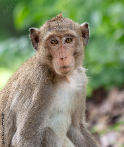 wild, tropical, nature, wildlife, mammal, forest, animal, monkey, jungle, primate, travel, face, portrait, asia, green, park, cute, macaque, fur, sitting, young, brown, baby, expression, funny, look, tree, langur, animal