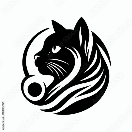 Monochrome Cat Face Elegant Feline Silhouette Minimalist Cat Line Art, Stylized Cat Portrait design.