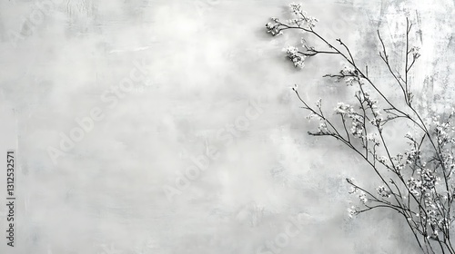 floral, arrangement, monochrome, background, texture, minimalist, design, elegant, simple, flower, branch, grey, white, delicate, pretty, beauty, nature, art, photo, image, picture, aesthetic, style, decor, home, wall, card, invitation, template, poster, overhead, view, copy, space, blank, frame, still, life, botanical, subtile, calm, peaceful, serene, relaxing, inspiration, mood, vibe