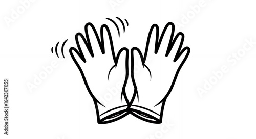 Monochrome Illustration of Two Gloves Side by Side with Motion Lines on White Background Graphic Depicting Shaking Vibrating and Handwear