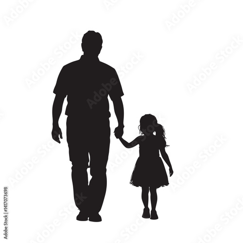 father, father, daughter, children, family, silhouette, black-and-white, monochrome, vector, graphic, design, isolated, walking, holding hands, togetherness, love, care, eltern, childhood, young, girl, man, adult, children, fatherhood, parenthood, human relationships, support, guidance, outdoors, nature, simple, stylised, illustration, clip art, family time, bonding, affection, tenderness, journey, growth, future, fathers day