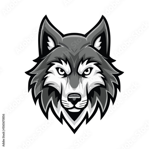 Monochrome Wolf Head Illustration Aggressive Animal Mascot Design on Black Background