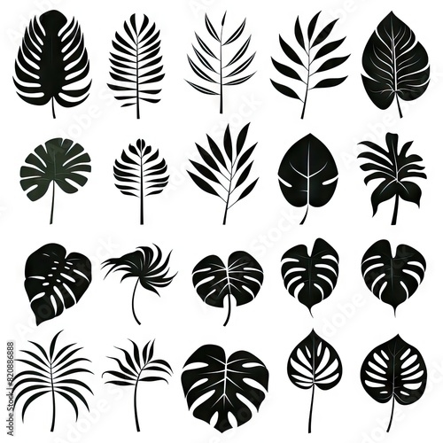 monstera, leaf, icon, collection, exotic, leaf, silhouette, tropical, plant, symbol, simple, isolated, white, background, generative, ai, illustration, palm, set, summer, floral, nature, jungle, hawaii, banana, tree branch, flower, foliage, natural, forest, silhouette, graphic, tropics, philodendron, botanical, botany, leaf, decoration, spring, hawaiian, object, green, sprig