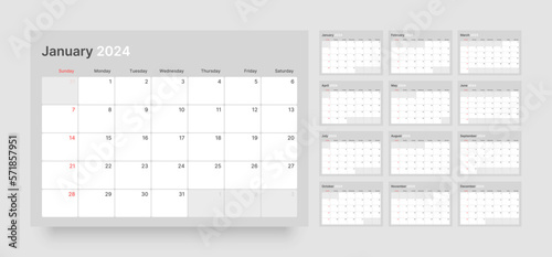 calendar, 2024, planner, year, wall, vector, grid, desktop, english, geometric, 12, month, layout, template, quarterly, print, date, design, diary, graphic, desk, planer, organiser, simple, week, monthly, schedule, season, modern, annual, basic, daily, business, clean, event, sunday, remind, table, quarter, section, horizontal, almanac, block