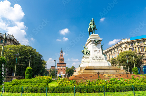 italy, milan, castle, garibaldi, castellón, historical building, milan, travel, statue, famous, landmark, tower, holiday maker, architecture, europa, italian, old, tour tourism, history, european, building, city, historic, summer, beautiful, ancient, fort, destination, blue, square, horse, bronze, sky, white, mediaeval, fortress, background, piazza, large, center, heritage, sculpture, day, clear, sunny, cloud