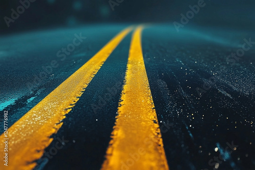 road, yellow, line, rainy, wet, asphalt, dark, moody, closeup, lane, driving, traffic, surface, highway, travel, transport, transportation, street, texture, route, rain, weather, pattern, perspective, abstract, urban, journey, direction, ground, nobody, outdoors, shine, light, streak, pavement, night, blurry, blurred, sharpened, low