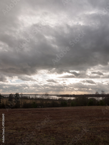moody skyline clouds over autumn farm field