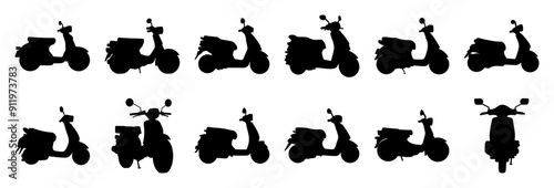 Moped scooter silhouette set vector design big pack of illustration and icon