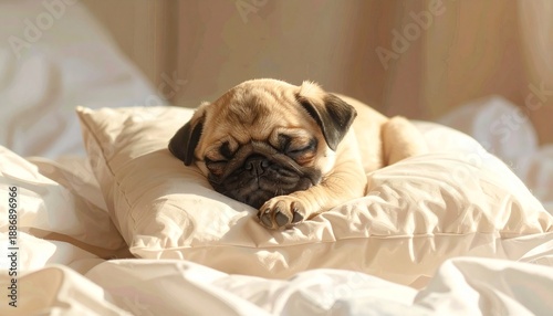 Mops-Welpe schläft auf Kissen